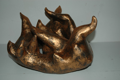 Mein neues grosses Projekt ist das der Namenskulptur. Es geht mir um die Bedeutung eines Vornamens, also die plastische Ausformung der individuellen Kraft einer Persönlichkeit. Darum entsteht etwas Einzigartiges im wahrsten Sinn. Die speziellen Eigenheiten einer Persönlichkeit, der Klang und auch die mythologische Bedeutung des Namens inspirieren mich zur Schöpfung einer Metallform. Die spezielle Expressivität entsteht auch dank den vielen Arbeitsgängen – ich patiniere die Bronze eigenhändig.