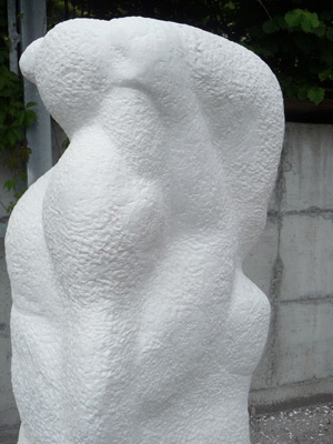 Lange fesselte mich die Marmor-Stele, die Anziehungskraft war enorm. Das Ave Maria eines Russischen Chors schenkte mir die konkrete Vision, der Stein sprach. Ich sah, was im Stein war. Worte sind zwar mässig nützlich, aber versuchen kann ich es doch: Es geht um die Urmutter-Energie. Trost ist eine Bewegung: schützendes Loslassen.